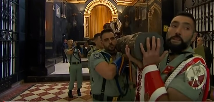 Malaga (Spagna) 29 marzo 2018. Nella cattedrale di San Domenico lo squadrone dei Legionari Guastatori del Terzo inizia la processione del Cristo della Buona Morte. In questo rito della Settimana [...]